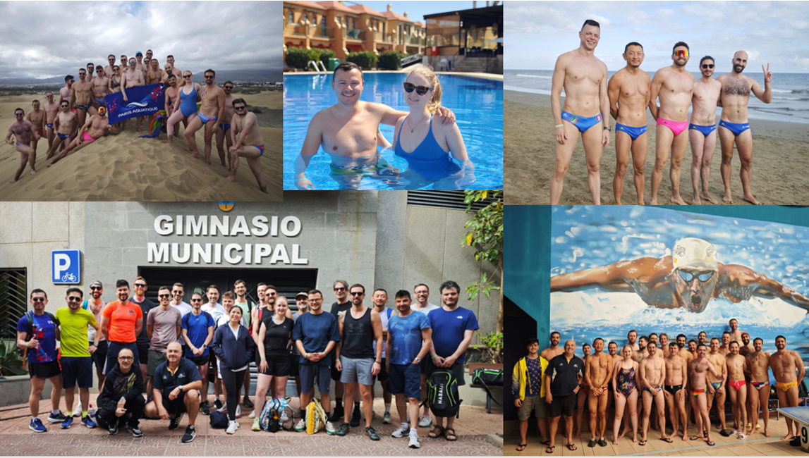 Beyond the sporting aspect of the camp (in the morning), the Paris Aquatique camp in Canary Islands is also a festive, friendly and joyful camp with afternoons at the beach or around the pool, aperitifs, themed evenings, music, fun, sun, walks in the dunes, meetings, new friendships and of course the parade during the Gay Pride on Saturday, May 9th, 2026. In short, it's like sports holidays.